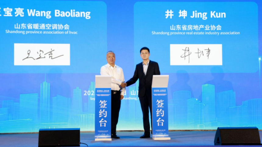 活动中,武城县政府主要负责同志公布了第一批“武城暖通”区域公共品牌企业名单,任海涛、樊廷雷共同为“齐鲁建造”武城暖通区域品牌揭牌,山东省暖通空调协会分别与山东省房地产业协会、山东省勘察设计协会、山东省对外投资与经济合作商会签署了合作发展协议,并联合发布了山东省暖通空调产业链协同高质量发展倡议书。活动开始前,与会领导一同到山东中威空调设备集团有限公司、海创空调设备有限公司、县会展中心参观暖通空调安装产业展示。